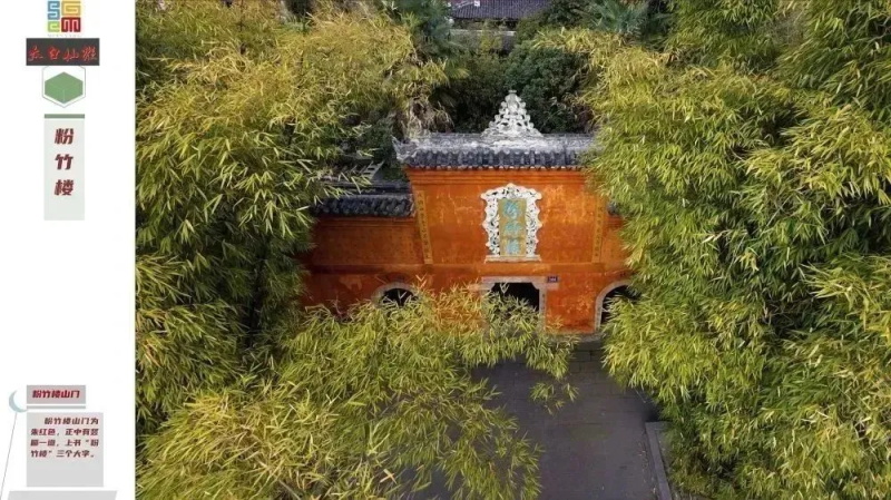 The Pink Bamboo House was the former residence of Li Bai's younger sister, Li Yueyuan, located at the foot of Taihua Mountain to the north of Qinglian Town. In front of the Fenzhu Tower, there is a stele inscribed with the "Record of the Reconstruction of Fenzhu Tower" erected in the 17th year of the Daoguang reign (1837), which reads: "The Fenzhu Tower was built by Mr. Li Qinglian for his sister Yueyuan." From the Tang Dynasty to the Ming Dynasty, the worship has never ceased. It is said that Li Yueyuan often lived here with his girlfriend Zhang Xue 'e, enjoying themselves by playing the zither, chess, calligraphy and painting. At dawn and dusk, people often splashed the powder water after washing their faces on the green bamboo downstairs. Over time, a layer of white powder covered the bamboo, and thus later generations called this building the "Powder Bamboo Building".
