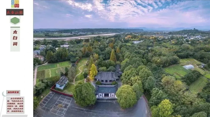 Taibai Shrine is located at the confluence of the Panjiang River and the Fujiang River, south of Longxi Courtyard in Qinglian Town. It is a building where generations of people in Li Bai's hometown paid homage to him. According to the "Zhangming County Annals", Taibai Shrine was initially built in the Song Dynasty and has been repeatedly ravaged by wars and renovated many times. The existing layout of the gate, entrance hall, side rooms, main hall and courtyard was formed during the Qianlong period of the Qing Dynasty. In 1962, Taibai Ci was designated as a provincial-level original cultural relic protection unit by the People's Government of Sichuan Province. A stone tablet inscribed with the words "Hometown of Li Bai" by Comrade Deng Xiaoping was erected in the courtyard of the newly built gate.