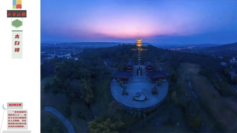 Taibai Tower is located on the top of Tianbao Mountain in the Li Bai Former Residence Scenic Area of Qinglian Town. It is a magnificent Tang-style pavilion, consisting of the main building Taibai Tower, the courtyard corridor and Dapeng Pavilion.
